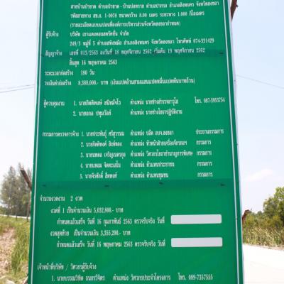 วันที่ 9 มีนาคม 2563 นายประพันธุ์ ศรีสุวรรณ ปลัดองค์การบริหารส่วนจังหวัด ปฏิบัติหน้าที่นายกองค์การบริหารส่วนจังหวัดสงขลา ลงพื้นที่ ตรวจความคืบหน้างานก่อสร้างถนนคอนกรีตเสริมเหล็ก ขนาดความกว้าง 8.00 เมตร ระยะทาง 1.00 กิโลเมตร สายบ้านป่าขาด-บ้านบ่อทราย ตำบลปากรอ อำเภอสิงหนคร จังหวัดสงขลา