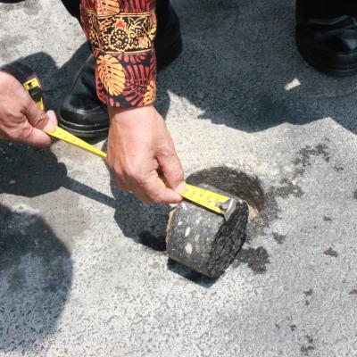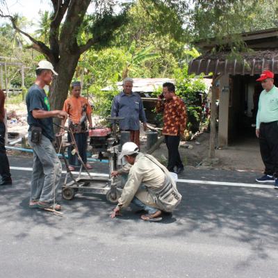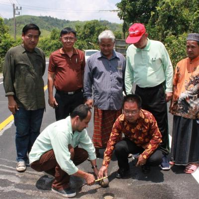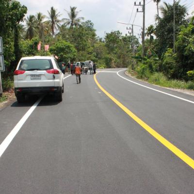 ปลัด อบจ. ปฏิบัติหน้าที่ นายก อบจ.สงขลา ผู้อำนวยการกองช่าง และเจ้าหน้าที่กองช่าง ลงพื้นที่ตรวจความคืบหน้าการก่อสร้างถนนแอสฟัลติกคอนกรีต