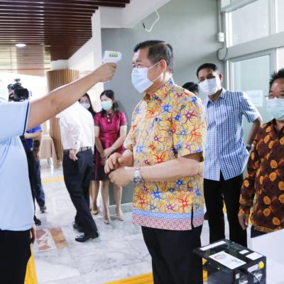 วันที่ 14 เมษายน 2563 นายประพันธ์ ศรีสุวรรณ ปลัดองค์การบริหารส่วนจังหวัดสงขลาปฏิบัติหน้าที่นายก อบจ.สงขลา พร้อมด้วยข้าราชการ หัวหน้าส่วนและเจ้าหน้าที่ในสังกัดองค์การบริหารส่วนจังหวัดสงขลา ร่วมให้การต้อนรับนายนิพนธ์ บุญญามณี รัฐมนตรีช่วยว่าการกระทรวงมหาดไทย (มท.2) ในโอกาสเดินทางมาเยี่ยมเยือน และให้กำลังใจ คณะแพทย์ พยาบาล ที่มาปฏิบัติหน้าที่ในอาคารศูนย์บริบาลผู้สูงอายุ องค์การบริหารส่วนจังหวัดสงขลา เนื่องจากสถานการณ์การแพร่ระบาดของเชื้อไวรัสโคโรนา 2019 อยู่ในขณะนี้ และร่วมเป็นสักขีพยานในการมอบอุปกรณ์เครื่องวัดอุณหภูมิร่างกายเทอร์โมสแกนจำนวน 10 เครื่อง และมอบเงินจำนวน 20,000 บาทให้แก่ศูนย์ประสานงานการรับบริจาค เพื่อช่วยเหลือทีมดูแลรักษา ผู้ป่วย โดย มีรศ.นายแพทย์ พุฒิศักดิ์ พุทธวิบูลย์ คณบดีคณะแพทย์ศาสตร์ มหาวิทยาลัยสงขลานครินทร์ ผู้อำนวยการโรงพยาบาลสงขลานครินทร์ สาขา 2 และรศ.แพทย์หญิง มณฑิรา ตัณฑนุช หัวหน้าภาควิชาศัลยศาสตร์ คณะแพทย์ศาสตร์ มหาวิทยาลัยสงขลานครินทร์ สาขา 2 เป็นผู้รับมอบ ณ อาคารศูนย์บริบาลผู้สูงอายุ ตำบลพะวง อำเภอเมือง จังหวัดสงขลา พร้อมทั้งนายอำพล พงษ์สุวรรณ รองผวจ.สงขลา ปลัดจังหวัดสงขลา นายอำเภอเมืองสงขลา ร่วมเป็นสักขีพยาน