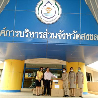 วันที่ 8 มิถุนายน 2563 นายประพันธุ์ ศรีสุวรรณ ปลัดองค์การบริหารส่วนจังหวัด ปฏิบัติหน้าที่นายกองค์การบริหารส่วนจังหวัดสงขลา และหัวหน้าส่วนราชการ องค์การบริหารส่วนจังหวัดสงขลา รับมอบวัสดุการแพทย์ และเวชภัณฑ์ที่มิใช่ยา ที่ใช้ในการป้องกันควบคุมการระบาดโรคติดเชื้อไวรัส โคโรน่า 2019 (Covid-19) จากตัวแทนของคุณเจน ปิยะทัต ซึ่งได้จัดโครงการ “แบดมินตันไทย ร่วมใจต้านภัยโควิด-19“ ได้แก่ สเปรย์แอลกอฮอล์ ถุงมือยาง หน้ากากผ้า หน้ากากอนามัย (dispose) ชุดอุปกรณ์ป้องกัน (PPE) โดย อบจ.สงขลา จะเป็นตัวกลางนำไปแจกจ่ายให้แก่บุคลากรสาธารณสุข หน่วยบริการสาธารณสุขในพื้นที่ กลุ่มเป้าหมายที่มีภาวะเสี่ยง ได้นำไปใช้ในการปฏิบัติงานป้องกันและควบคุมการระบาดโรคติดเชื้อไวรัส โคโรน่า 2019 (Covid-19)