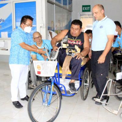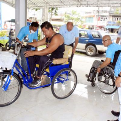 5 สิงหาคม 2563 นายประพันธ์ ศรีสุวรรณ ปลัดองค์การบริหารส่วนจังหวัดสงขลาปฏิบัติหน้าที่นายก อบจ.สงขลา ได้เดินทาง ณ ศูนย์ซ่อมสร้างสุขชุมชนวิทยาลัยเทคนิคหาดใหญ่ เพื่อมอบรถสามล้อโยกมือคนพิการ จำนวน 1 คัน ให้กับนายอุดม ขวัญเลื่อน โดยมี คุณฐิตารีย์ เชื้อพราหมณ์ พยาบาลวิชาชีพชำนาญการ อบจ.สงขลา และ Mr.Chris Mechler จิตอาสาชาวอเมริกัน ผู้ประกอบรถสามล้อโยกมือคนพิการ