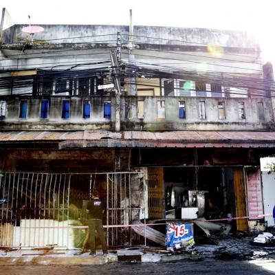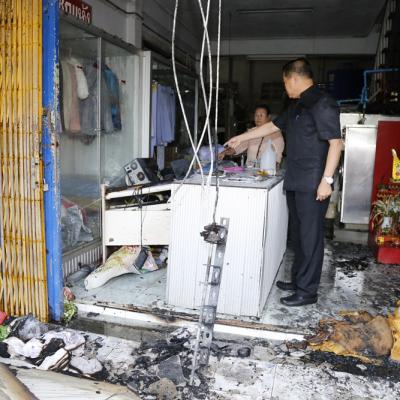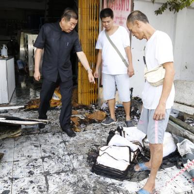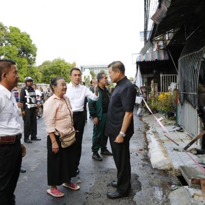 นายก อบจ.สงขลา ลงพื้นที่ตรวจเยี่ยมสถานที่เกิดเพลิงไหม้ ถนนสระเกษ ตำบลบ่อยาง