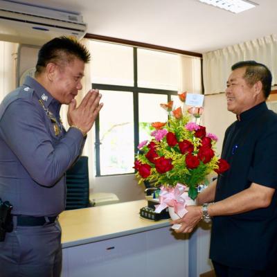 นายก อบจ.สงขลา มอบช่อดอกไม้แสดงความยินดีกับผู้บัญชาการตำรวจภูธรภาค 9
