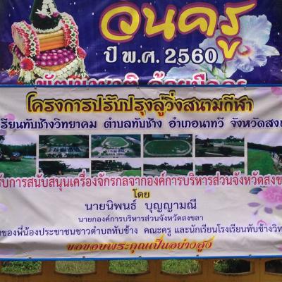 25 กรกฎาคม 2560 กองช่าง อบจ.สงขลา ลงพื้นที่เกรดปรับปรุงสนามกีฬา โรงเรียนทับช้างวิทยาคม ต.ทับช้าง อ.นาทวี จ.สงขลา