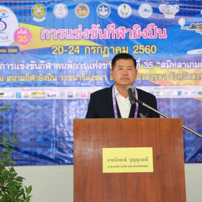 นายก อบจ.สงขลา ประธานในพิธีเปิดการแข่งขันยิงปืน ในการแข่งขันกีฬาคนพิการแห่งชาติ ครั้งที่ 35