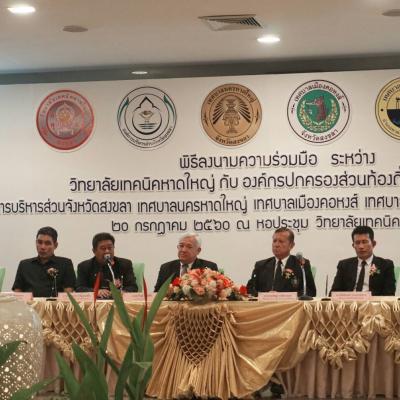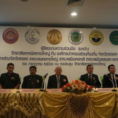 20 กรกฎาคม 2560 เวลา 10.00 น. นายสมหมาย ขวัญทองยิ้ม รองนายกองค์การบริหารส่วนจังหวัดสงขลา ร่วมพิธีลงนามความร่วมมือ เรื่องพัฒนาการเรียนการสอน ระหว่างวิทยาลัยเทคนิคหาดใหญ่ กับองค์กรปกครองส่วนท้องถิ่นจังหวัดสงขลา ประกอบด้วย องค์การบริหารส่วนจังหวัดสงขลา เทศบาลนครหาดใหญ่ เทศบาลเมืองคอหงส์ เทศบาลเมืองคลองแหและเทศบาลเมืองควนลัง ณ หอประขุมวิทยาลัยเทคนิคหาดใหญ่ อำเภอหาดใหญ่ จังหวัดสงขลา