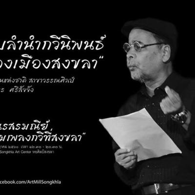 8 ก.ค.60 นายนิพนธ์ บุญญามณี นายกองค์การบริหารส่วนจังหวัดสงขลา ร่วมงาน รื่นรสรมณีย์ หอมเพลงกวี ที่สงขลา ณ หอศิลป์สงขลา อ.เมือง จ.สงขลา โดยมีศิลปินแห่งชาติ นำโดยอาจารย์เนารัตน์ พงษ์ไพบูลย์ อาจารย์สถาพร ศรีสัจจัง และควน ทวนยก เข้าร่วมในงานรื่นรมณีย์ หอมเพลงกวี ที่จังหวัดสงขลา