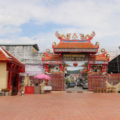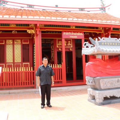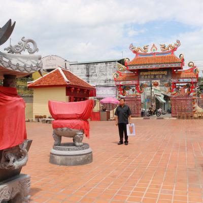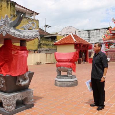 นายก อบจ.สงขลา สำรวจพื้นที่ที่จะใช้ในการก่อสร้าง อาคารเอนกประสงค์ศาลเจ้าพ่อกวนอู