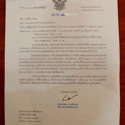 นายก อบจ.สงขลา รับมอบหนังสืออนุญาตให้ใช้ที่ดินราชพัสดุแปลงหมายเลขทะเบียนที่ สข.508 ถนนราชดำเนิน