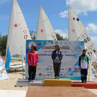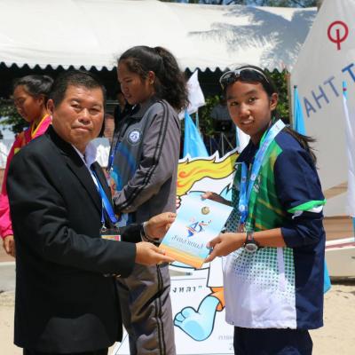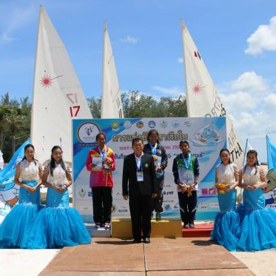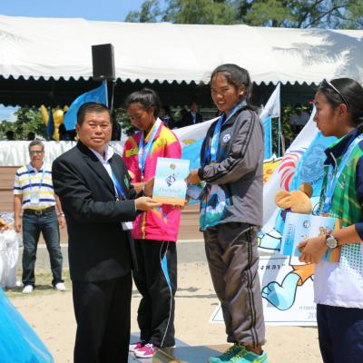 นายก อบจ.สงขลา มอบเหรียญรางวัลให้แก่ผู้ชนะ การแข่งขันเรือใบประเภทเลเซอร์ เลเดียลหญิง