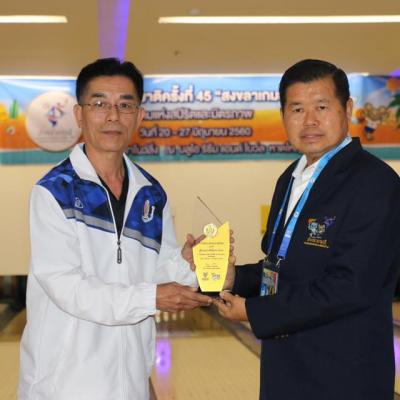 นายก อบจ.สงขลา ประธานในการมอบเหรียญรางวัลให้แก่ผู้ชนะ ประเภทโบว์ลิ่ง
