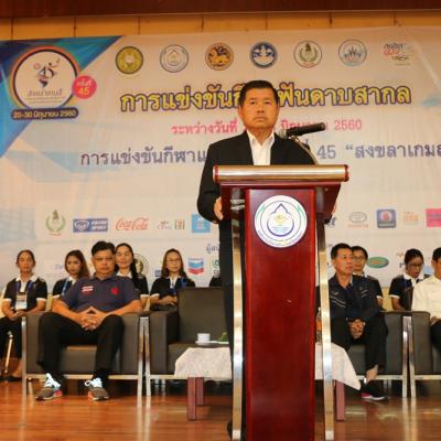 21 มิ.ย.60 นายนิพนธ์ บุญญามณี นายกองค์การบริหารส่วนจังหวัดสงขลา ประธานในพิธีเปิดการแข่งขันกีฬาฟันดาบสากล มีเลขาธิการสมาคมฟันดาบแห่งประเทศไทย คณะกรรมการ เจ้าหน้าที่และนักกีฬา เข้าร่วมในพิธีเปิด ณ อาคารศรีเกียรติพัฒน์ องค์การบริหารส่วนจังหวัดสงขลา