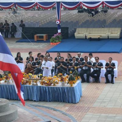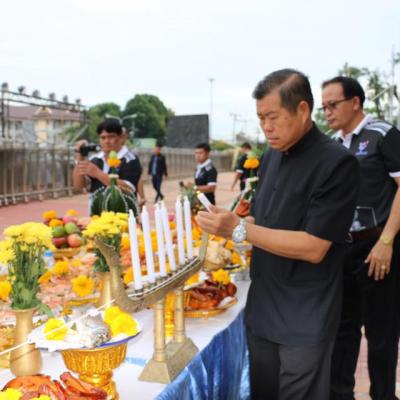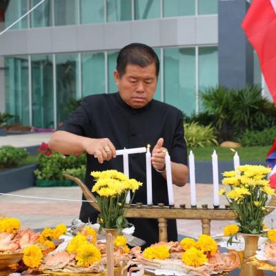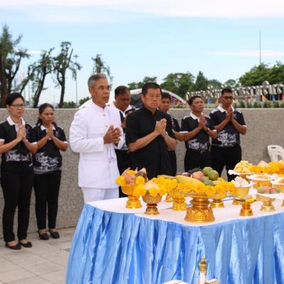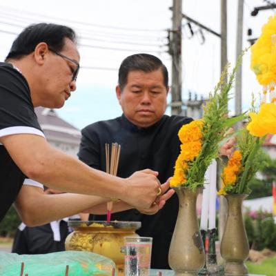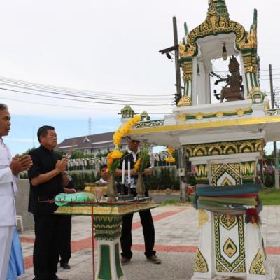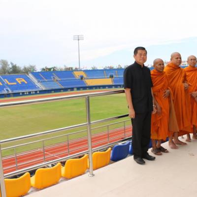 นายก อบจ.สงขลาทำพิธีบวงสรวงกราบไหว้ขอพรศาลพระภูมิเจ้าที่ ภายในสนามกีฬาติณสูลานนท์