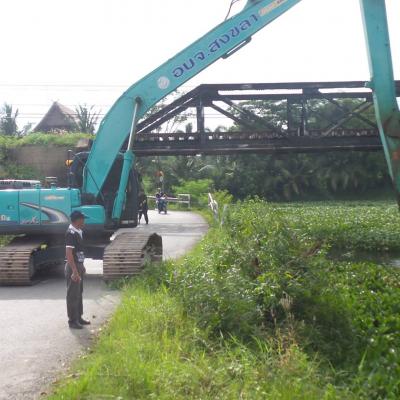 รองนายก อบจ.สงขลา นำเครื่องจักรกล พร้อมกองช่างขุดลอกผักตบชวา