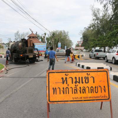 นายกอบจ.สงขลา ลงพื้นที่ดูการซ่อมแซมถนนหน้าศาลจังหวัด ศาลแขวง ศูนย์ราชการ(ศาลากลาง)