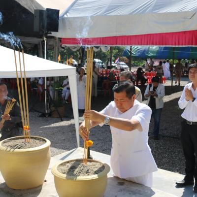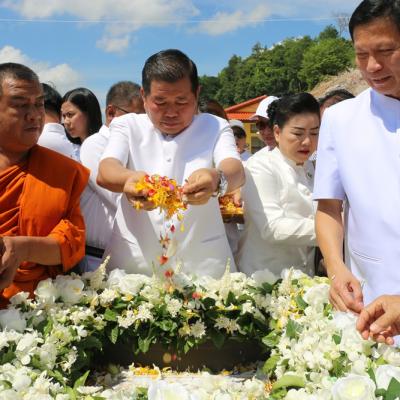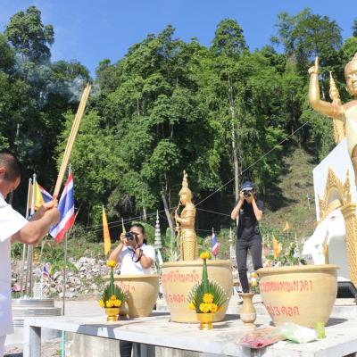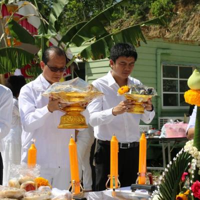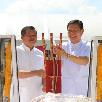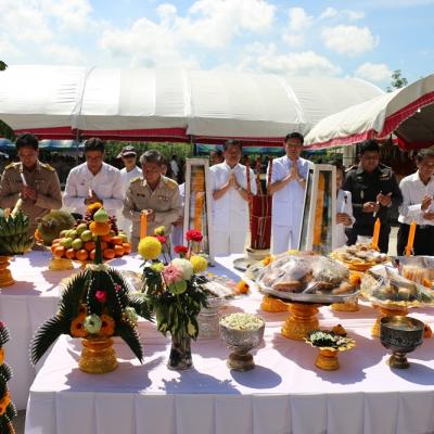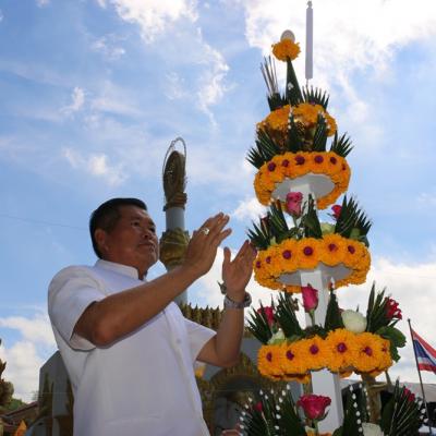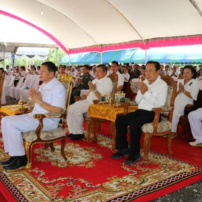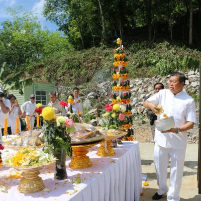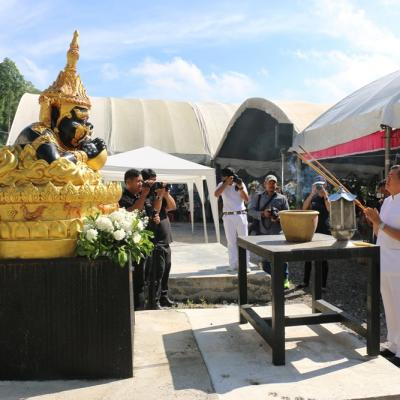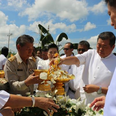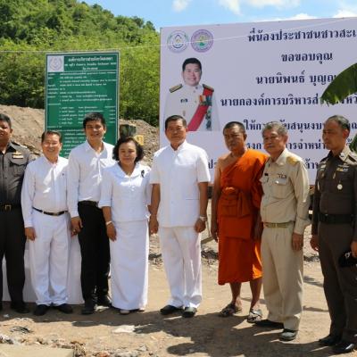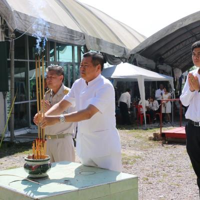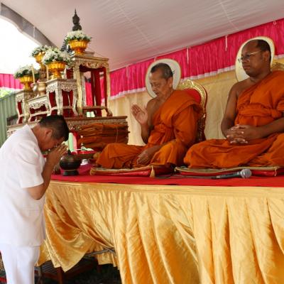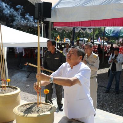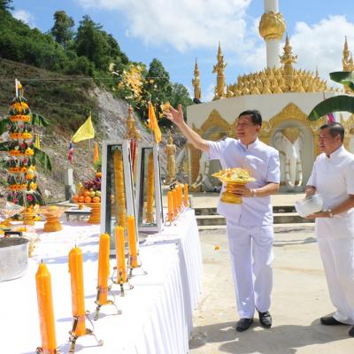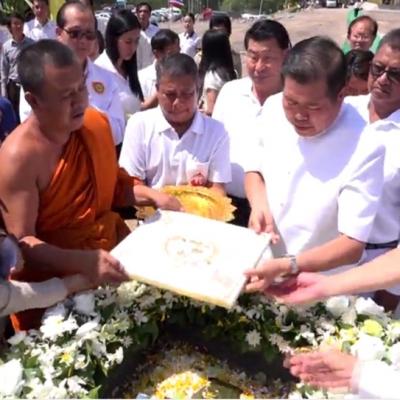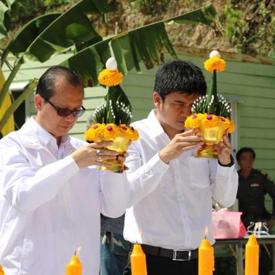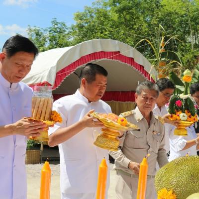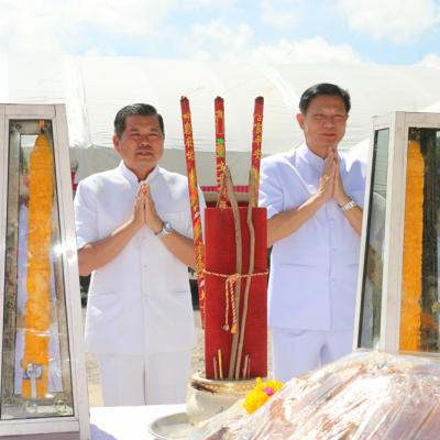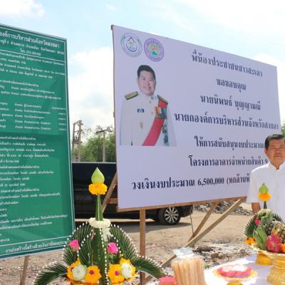 นายกอบจ.สงขลา ทำพิธีนำฤกษ์จุดธูปเทียนบูชา พร้อมทั้งวางศิลาฤกษ์อาคารจำหน่ายสินค้าของที่ระลึก 9 ตำบล
