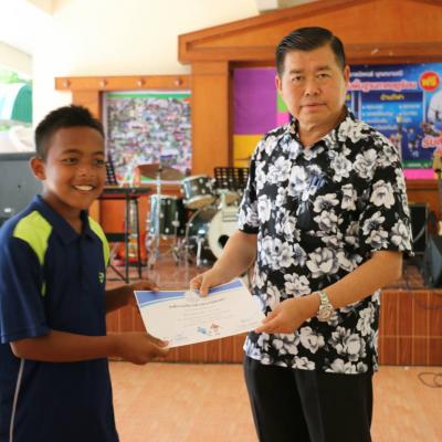 นายกอบจ.สงขลา ประธานในพิธีปิดกิจกรรม การสอนทักษะขั้นพื้นฐานภาคฤดูร้อน ของโรงเรียนเกาะแต้วพิทยาสรรค์