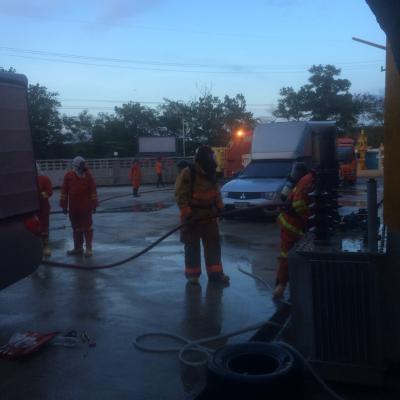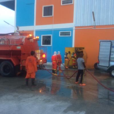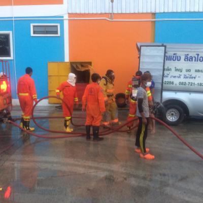 อบจ.สงขลา สนับสนุนเครื่องช่วยหายใจ พร้อมเจ้าหน้าที่เหตุไฟไหม้และแอมโมเนียรั่วไหลโรงน้ำแข็งลีลาไอซ์