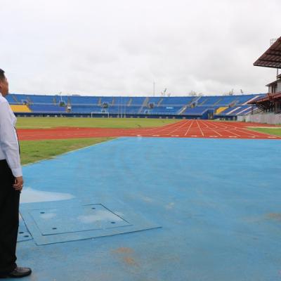 3 เม.ย.60 นายนิพนธ์ บุญญามณี นายก อบจ.สงขลา ลงพื้นที่ติดตามความก้าวหน้าของสนามติณฯ ซึ่งอยู่ในระหว่างปรับพื้นของสนามด้านหน้าของสนามติณฯ ตลอดแนวเสาธง ในส่วนด้านในแต่ละชั้น ได้วางโครงเพื่อเตรียมติดตั้งกระจกเกือบทุกห้องให้เสร็จในอีกไม่กี่วัน และยังเหลือชิ้นงานบางส่วนที่กำลังรออะไหล่ส่งมา ดังนั้นจึงให้ความมั่นใจได้ว่า เสร็จทันแน่นอน