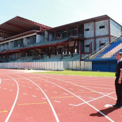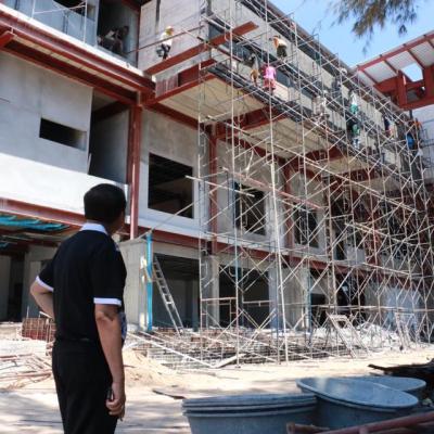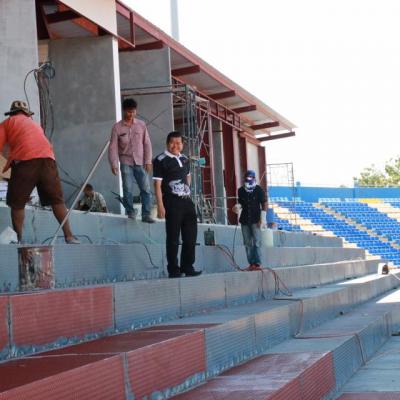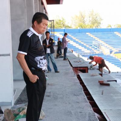 นายกอบจ.สงขลา ลงพื้นที่ตรวจดูความคืบหน้าของการก่อสร้างอัฒจรรย์ส่วนหน้า สนามติณฯ