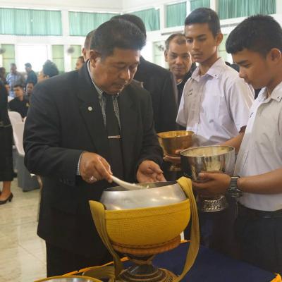 14 มีนาคม 2560 นายสมหมาย ขวัญทองยิ้ม รองนายกองค์การบริหารส่วนจังหวัดสงขลา ร่วมเป็นเกียรติและทำบุญถวายภัตตาหารเพลแด่พระภิกษุสงฆ์ เนื่องในวันคล้ายวันประกาศจัดตั้งโรงเรียนนวมินทราชูทิศ ทักษิณ ครบรอบ 32 ปี ณ หอประชุมราชพฤกษ์ โรงเรียนนวมินทราชูทิศ ทักษิณ