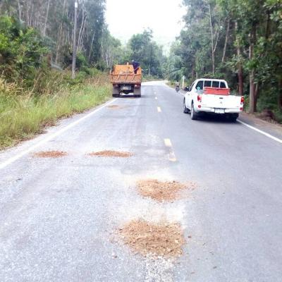 กองช่าง อบจ.สงขลา ลงพื้นที่ซ่อมแซมพื้นถนนสายบ้านเกาะสะบ้า อ.เทพา - บ้านสะพานไม้แก่นตก