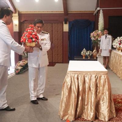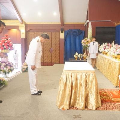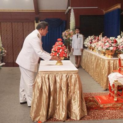 นายสมหมาย ขวัญทองยิ้ม รองนายก อบจ.สงขลา ร่วมพิธีวางพานพุ่มดอกไม้สดเนื่องในวันที่ระลึก พระบาทสมเด็จพระนั่งเกล้าเจ้าอยู่หัวพระมหาเจษฎาราชเจ้า