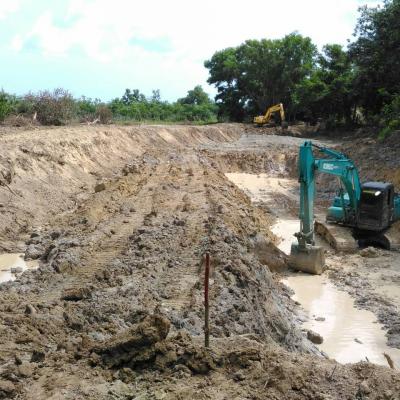 กองช่าง อบจ.สงขลา ลงพื้นที่ติดตามโครงการขุดสระน้ำวังเรือ ต.นาหว้า อ.จะนะ
