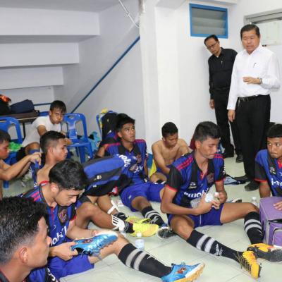 นายก อบจ.สงขลา เยี่ยมให้กำลังใจ และชมการแข่งขันนักเตะเยาวชนอายุ 17 ปี จากโรงเรียนกีฬาอบจ.สงขลา