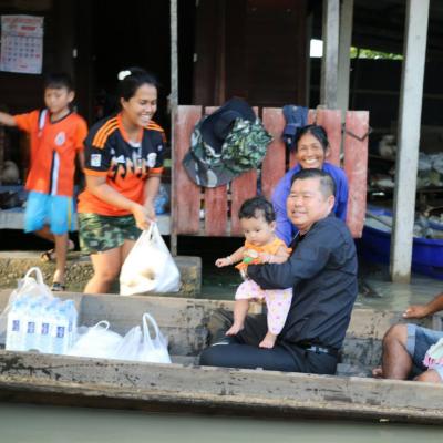 11 ม.ค.2560 เวลา 14.30 น. นายนิพนธ์ บุญญามณี นายก อบจ.สงขลา ลงพื้นที่เยี่ยมพี่น้องประชาชน ที่ได้รับความเดือดร้อนจากอุทกภัย พร้อมทั้งนำข้าวกล่อง น้ำและถุงยังชีพ มาแจกจ่ายให้แก่ผู้ประสบอุทกภัย ที่ตำบลโรง และ ที่หมู่ 1 วัดมหาการ อำเภอกระแสสินธุ์ นอกจากนี้ได้เดินทางมายังครัว อบจ.สงขลา ที่ปักหลักทำข้าวกล่องแจกจ่ายให้แก่พี่น้องในพื้นที่ระโนดมาเป็นวันที่สาม และครั้งนี้ นายนิพนธ์ บุญญามณี นายก อบจ.สงขลา ได้ร่วมแจกจ่ายข้าวกล่อง น้ำและถุงยังชีพ ให้แก่พี่น้องประชาชนที่ตำบลหัวป่า และนำถุงยังชีพพร้อมข้าวกล่องล่องเรือไปเยี่ยมประชาชนที่ยังได้รับความเดือดร้อนที่ หมู่ 4 บ้านพราน ตำบลบ้านขาว อำเภอระโนด จังหวัดสงขลา ซึ่งที่บ้านพรานหมู่ 4 แห่งนี้ยังคงได้รับผลกระทบจากน้ำท่วมขัง รถใหญ่ยังไม่สามารถเดินทางเข้าไปได้