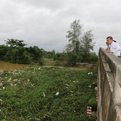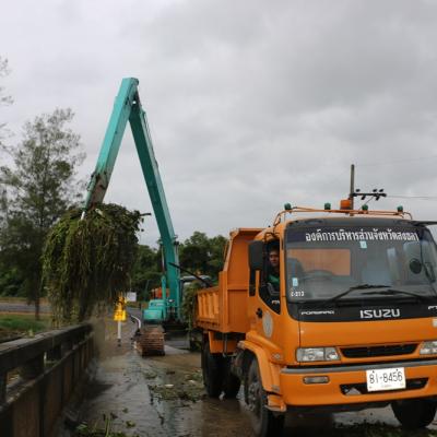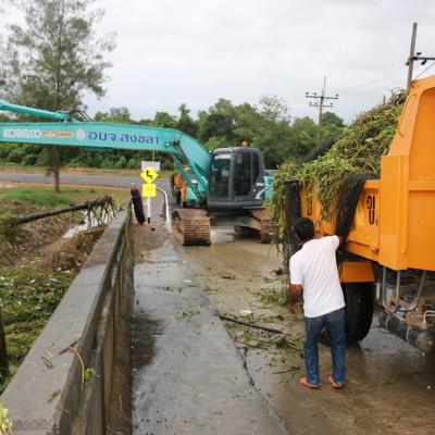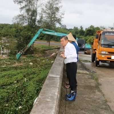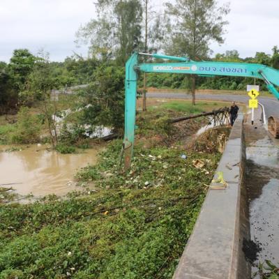 นายก อบจ.สงขลา ลงพื้นที่ตำบลคูเต่า ในการขุดลอกคลองอู่ตะเภา บริเวณสะพานลากูน่า