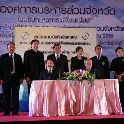 16 ธ.ค.59 นายนิพนธ์ บุญญามณี นายก อบจ.สงขลา ร่วมเป็นสักขีพยานในพิธีลงนามบันทึกข้อตกลง สารสนเทศเพื่อการบริหารจัดการน้ำโดยท้องถิ่นอย่างยั่งยืน ระหว่างสถาบันสารสนเทศทรัพยากรน้ำและการเกษตร และสมาคมองค์การบริหารส่วนจังหวัดแห่งประเทศไทย ณ ห้องคอนเวนชั่น โรงแรมแอมบาสเดอร์ ซิตี้ จอมเทียน จังหวัดชลบุรี
