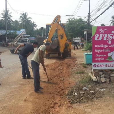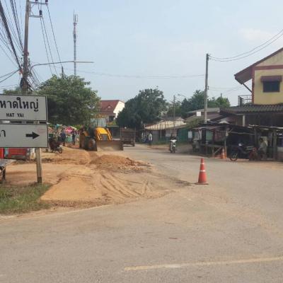 กองช่าง อบจ.สงขลา ลงพื้นที่ขุดแต่งคูระบายน้ำ ถนนสายหน้าวัดโพธิ์ - บ้านวังเชียด