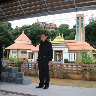 นายก อบจ.สงขลา ตรวจความคืบหน้าของการก่อสร้างอาคารศูนย์จำหน่ายสินค้า หน้าวัดพะโคะ