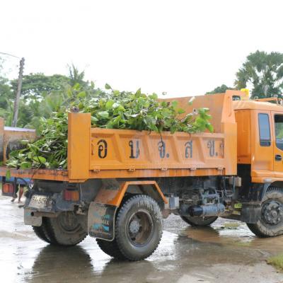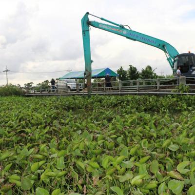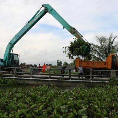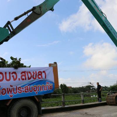 นายก อบจ.สงขลา ติดตามการกำจัดวัชพืชผักตบชวาออกจากบริเวณสะพานข้ามคลอง หน้าวัดหัวเค็ด
