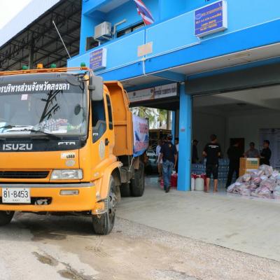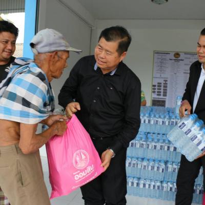 นายก อบจ.สงขลา นำน้ำดื่ม และถุงยังชีพ มาแจกจ่ายให้กับพี่น้องประชาชนในหมู่ 4 ตำบลโรง