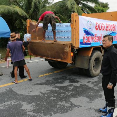 7 ธ.ค.59 นายนิพนธ์ บุญญามณี นายก อบจ.สงขลา ลงพื้นที่อำเภอระโนด และกระแสสินธ์ พร้อมด้วย ส.อบจ.สงขลาเขต อ.ระโนด ตรวจดูสภาพปริมาณน้ำในคลองระโนด เเละเยี่ยมผู้ประสบอุทกภัยในเขตอำเภอระโนด พร้อมทั้งนำน้ำดื่ม สิ่งของเครื่องอุปโภคบริโภค มามอบให้แก่ประชาชนผู้ประสบอุทกภัย และพระสงฆ์ภายในวัดที่ถูกน้ำท่วมขัง เพื่อเป็นการบรรเทาความเดือดร้อนในเบื้องต้น ทั้งนี้มีผู้มารอรับบริจาคสิ่งของหลายครัวเรือน ที่บ้านเรือนถูกน้ำท่วม โดยมีสโมสรไลออนส์ หาดใหญ่ และสะเดา ร่วมนำสิ่งของมาแจกให้แก่ผู้ประสบภัยในครั้งนี้ด้วย