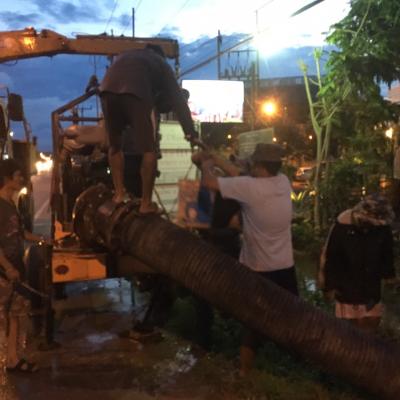 งานป้องกันฯ อบจ.สงขลา ติดตั้งเครื่องสูบน้ำขนาด 12 นิ้ว พื้นที่อำเภอสิงหนคร จังหวัดสงขลา