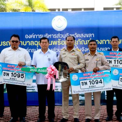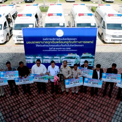 นายก อบจ.สงขลา ทำพิธีมอบรถพยาบาลฉุกเฉินพร้อมครุภัณฑ์ทางการแพทย์ ให้แก่ อปท.