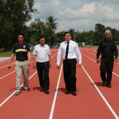นายก อบจ.สงขลา ตรวจความคืบหน้าของการก่อสร้างลู่วิ่งยางสังเคราะห์ สนามกีฬาประจำอำเภอสะเดา