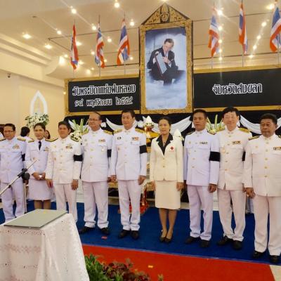14 พ.ย.59 นายสมหมาย ขวัญทองยิ้ม รองนายกองค์การบริหารส่วนจังหวัดสงขลา พร้อมด้วยหัวหน้าส่วนราชการ และข้าราชการในสังกัด ร่วมพิธีวางพานพุ่มดอกไม้สด แด่พระบาทสมเด็จพระปรมินทรมหาภูมิพลอดุลยเดช เนื่องใน “วันพระบิดาแห่งฝนหลวง” ณ ห้องประชุม 1 มหาวิทยาลัยราชภัฏสงขลา อำเภอเมืองสงขลา จังหวัดสงขลา โดยมีนายขจรศักดิ์ เจริญโสภา รองผู้ว่าราชการจังหวัดสงขลา เป็นประธานในพิธีวางพานพุ่มดอกไม้สด กล่าวคำถวายราชสดุดีแด่พระบาทสมเด็จพระปรมินทรมหาภูมิพลอดุลยเดช และร่วมชมนิทรรศการ