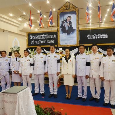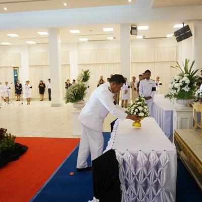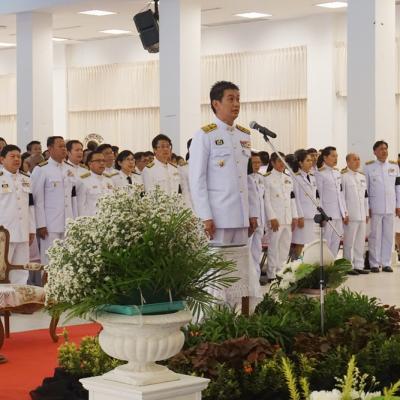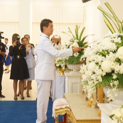 พิธีวางพานพุ่มดอกไม้สด แด่พระบาทสมเด็จพระปรมินทรมหาภูมิพลอดุลยเดช เนื่องในวันพระบิดาแห่งฝนหลวง