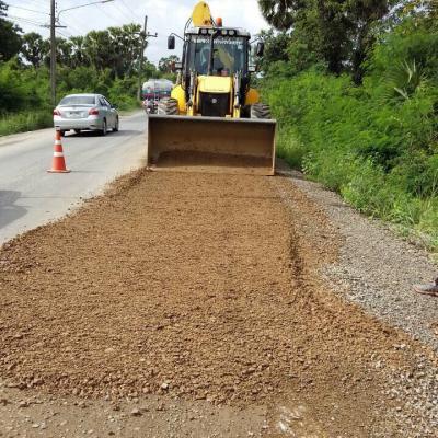 กองช่าง อบจ.สงขลา ลงพื้นที่ซ่อมพื้นทางถนนสายบ้านบ่อป่า - บ้านบางเขียด ช่วงเขต อบต .ชะแล้
