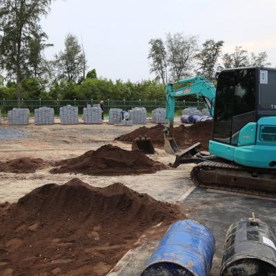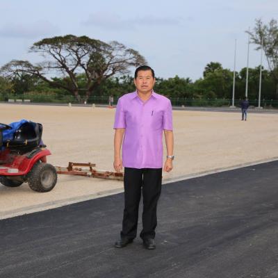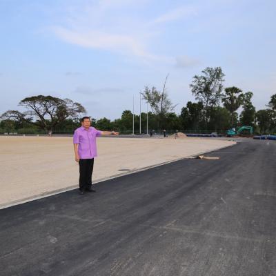 นายก อบจ.สงขลา ตรวจดูความคืบหน้าของการก่อสร้างสนามกีฬาพร้อมลู่วิ่งยางสังเคราะห์ ประจำอำเภอระโนด