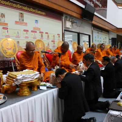 เมื่อวันที่ 1 พฤศจิกายน 2559 นายนิพนธ์ บุญญามณี นายก อบจ.สงขลา นำคณะผู้บริหาร สมาชิกสภา อบจ.สงขลา และบุคลากรในสังกัด อบจ.สงขลา ทำพิธีบวงสรวงเจ้าที่ ณ ประตูใหญ่ ด้านหน้าองค์การบริหารส่วนจังหวัดสงขลา พร้อมถวายเครื่องไทยทานดอกไม้ธูปเทียน ต่อจากนั้นคณะผู้บริหาร สมาชิกสภา อบจ.สงขลา และบุคลากรในสังกัด ได้มาทำพิธีบวงสรวงสักการะบูชา พร้อมถวายเครื่องไทยทาน ดอกไม้ธูปเทียนต่อท้าวมหาพรหม เนื่องในวันองค์การบริหารส่วนจังหวัด ประจำปี 2559 และในช่วงสายทาง อบจ.สงขลาได้จัดให้มีพิธีกรรมทางศาสนา โดยมี นายนิพนธ์ บุญญามณี นายก อบจ.สงขลา เป็นประธานในพิธีสวดพระอภิธรรม ทั้งนี้เพื่อถวายเป็นพระราชกุศล และได้จัดให้มีพิธีลงนามถวายความอาลัย แด่พระบาทสมเด็จพระปรมินทรมหาภูมิพลอดุลยเดช พร้อมทอดผ้าบังสกุลหน้าพระบรมฉายาลักษณ์ พระบาทสมเด็จพระปรมินทรมหาภูมิพลอดุลยเดช เนื่องในวันสถาปนาองค์การบริหารส่วนจังหวัด ซึ่ง มีหน่วยงานภาครัฐ คณะผู้บริหารจากองค์กรปกครองส่วนท้องถิ่น (อปท.)คณะผู้บริหารจาก อบจ.สงขลา ประธานสภา สมาชิกสภา อบจ.สงขลา ปลัด อบจ.สงขลา ข้าราชการ และพนักงาน องค์การบริหารส่วนจังหวัดสงขลา ร่วมในพิธี ณ บริเวณห้องโถง สำนักงานองค์การบริหารส่วนจังหวัดสงขลา