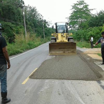 กองช่าง อบจ.สงขลา ลงพื้นที่ซ่อมแซมถนนลาดยาง สายบ้านคู - บ้านท่ามะปราง อ.รัตภูมิ จ.สงขลา
