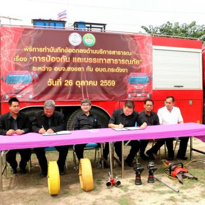 นายก อบจ.สงขลา ประธานในพิธีทำบันทึกข้อตกลง ด้านบริการสาธารณะในเรื่องการป้องกัน และบรรเทาสาธารณภัย