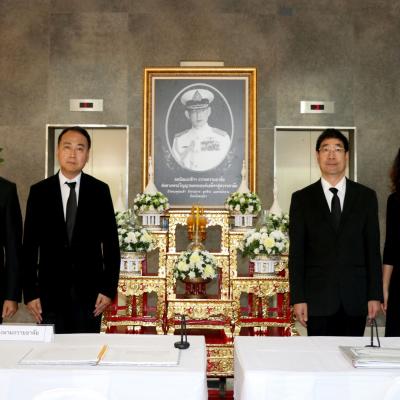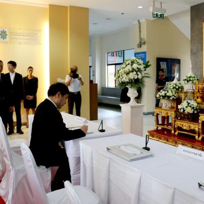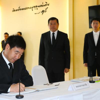 นายนิพนธ์ บุญญามณี นายก อบจ.สงขลา พร้อมด้วย นายอนุชิต ตระกูลมุทุตา รองผู้ว่าราชการจังหวัดสงขลา ให้การต้อนรับ นาย โจว ไห่ เฉิง กงสุลใหญ่แห่งสาธารณรัฐประชาชนจีน ประจำจังหวัดสงขลา พร้อมคณะ ในโอกาสเดินทางมาลงนามถวายความอาลัย แด่พระบาทสมเด็จพระปรมินทรมหาภูมิพลอดุลยเดช ณ ศาลากลางจังหวัดสงขลา อ.เมือง จ.สงขลา