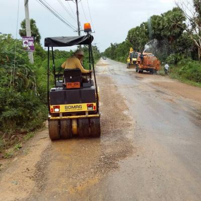 กองช่าง อบจ.สงขลา ลงพื้นที่ซ่อมพื้นทางหินคลุก ถนนสายบ้านบ่อป่า - บ้านบางเขียด