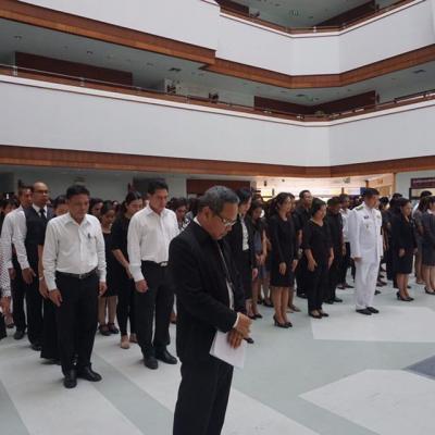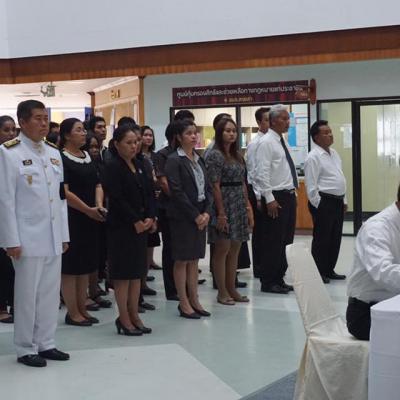 วันที่ 14 ต.ค. 59 เวลา 13.00 น. คณะผู้บริหาร สมาชิกสภาองค์การบริการส่วนจังหวัด ข้าราชการ และพนักงาน องค์การบริหารส่วนจังหวัดสงขลา พร้อมใจแต่งกายด้วยชุดสีขาวดำ ร่วมลงนามถวายอาลัยแด่พระบาทสมเด็จพระเจ้าอยู่หัวในพระบรมโกศ ณ บริเวณห้องโถงชั้นล่าง สำนักงานองค์การบริหารส่วนจังหวัดสงขลา โดยนายนิพนธ์ บุญญามณี นายกองค์การบริหารส่วนจังหวัดสงขลา เป็นประธานในการร่วมลงนามในสมุดไว้อาลัยพระบาทสมเด็จพระปรมินทรพระมหาภูมิพลอดุลยเดช บรรยากาศเป็นไปด้วยความเศร้าโศก